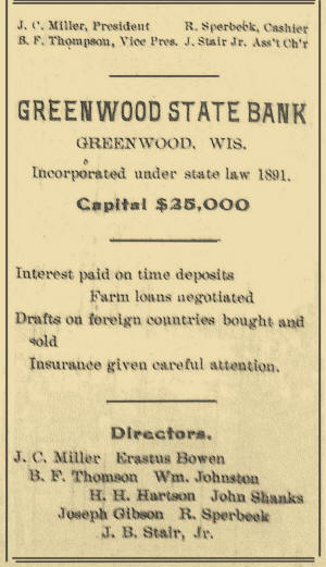 History: Greenwood, Wis., Greenwood State Bank