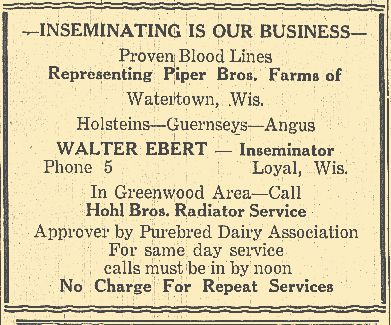 The ad above appeared in the Greenwood Gleaner, Greenwood, Wis. 27 July, 1950.