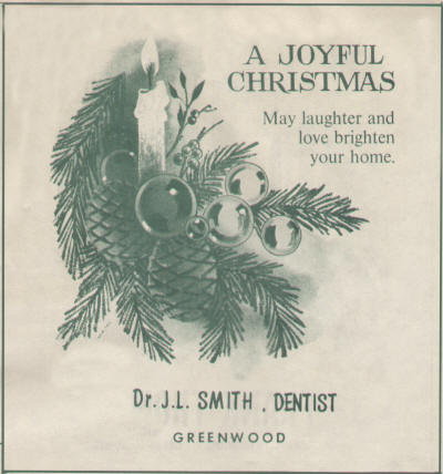 The ad above was purchased by Dr. John L. Smith and appeared in the 1967 Greenwood Gleaner Christmas Edition.