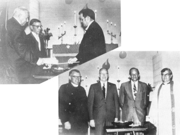 Memorial Day, 1971, was a day to be remembered by members of Our Saviors. It was on that day a pot luck dinner with roast pork was served at noon with Ronald Tieman, Arnie Kappus, and Bernard Denk roasting the pigs over charcoal fire. The pigs had been furnished by members of the congregation, namely, Lyle Verhulst and Calvin Johnson. At a service in the P.M. the mortgage, closing a debt of approximately $92,000, was burned. Pastor Myhrwold was theguest speaker.