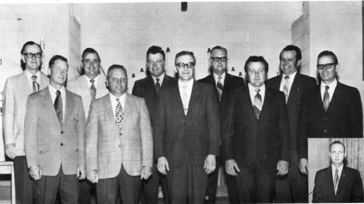 Church Council Back Row: Wm. Kavanaugh, Dale Jolivette, Robert Moseley, Einar Jackson, Leniel Meyers. Front Row: Henry Nielsen, Calvin Johnson, Wilbert Adams, Wayne Jackson, Howard Olsen. Inset - Lawrence Jackson |