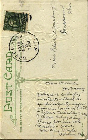 Recipent: Mrs. Elsie DeYoung, Greenwood, Wisconsin. Clark Co. |