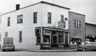 Jim's Dairy Bar was first opened by Jim Neuenfeldt (son of Wm.) 19 Jan 1950. The building was owned by William F. Neuenfeldt was first operated by his son, James Neuenfeldt followed by Raymond "Bud" Ackerman (Bud's Dairy Bar), Mr. & Mrs. Russell Edwards (Edward's Dairy Bar), and Gerald Neuenfeldt (Jerry's Dairy Bar was run by another of Wm. Neuenfeldt's sons). The Dairy Bar was preceded by George Papich's Coast to Coast, Rug Buker's Coast to Coast and Volk Bros. Tailor Shop (photo).
