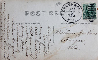 From: Mabel ?, Greenwood Wisconsin, 2 Sep 1903