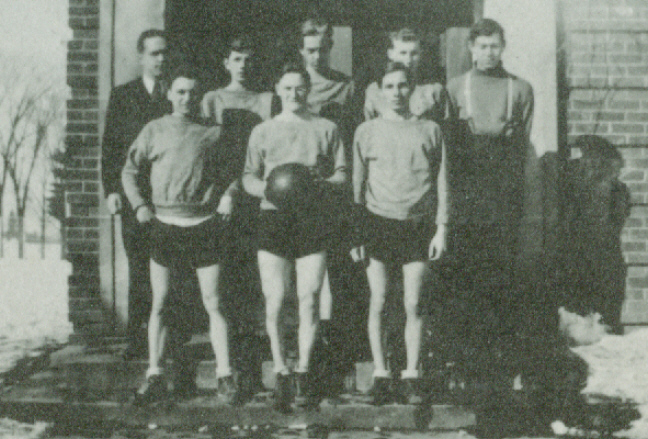 Back row: E. Poppe (manager), A. Krogness, V. Mech, Mr. Schwahn