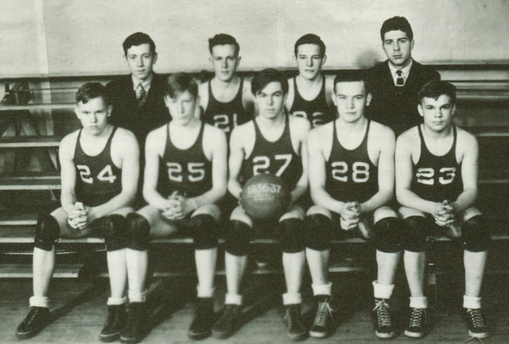 Forwards: H. Lyon, A. Krognoss, M. Mech. Center: K. Brown. Guards:
