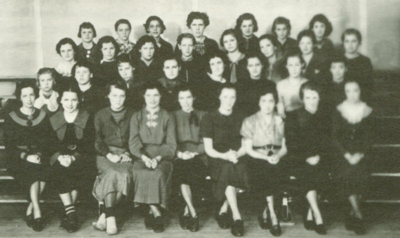 Front row: Miss Kelly (directress), E. Buker, B. Dill, J. Opdycke, L. Schwarze, D. Perman, M. Matkovich, B. Currie, E. Hegenbarth.