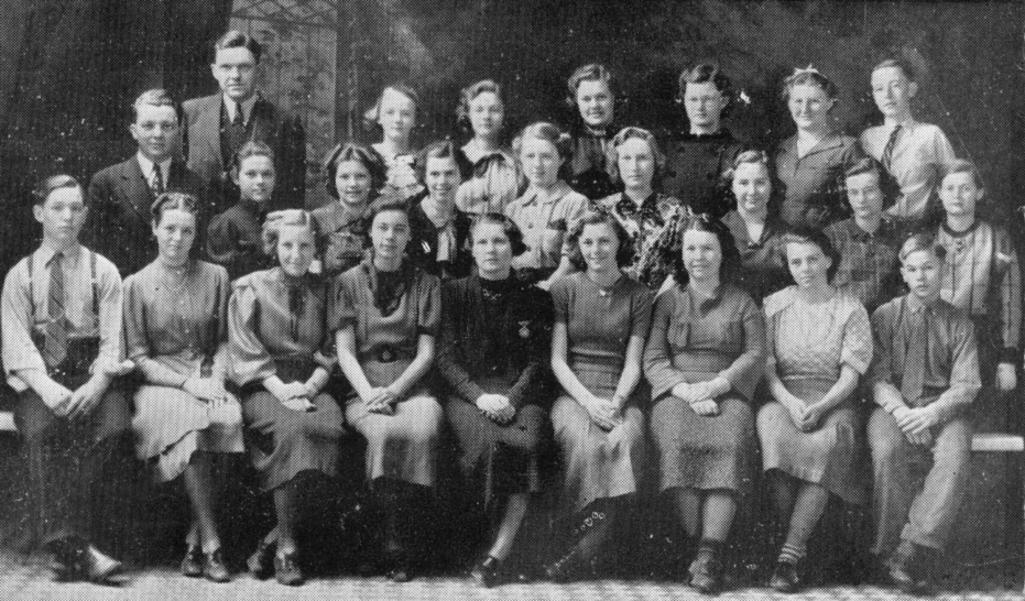 Third Row: A. Olson, G. Acker, B. Stafford, V. Rohde, Miss Bienfang, Adviser, M. Gemmeke, A. Hare, S. Brown, N. Jolivette.