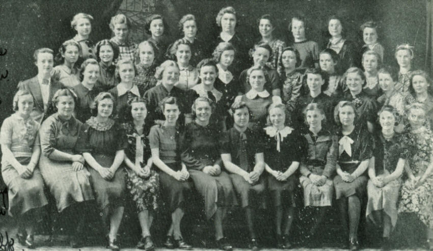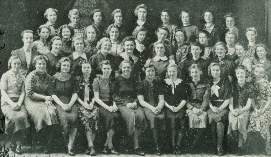 Third Row: Miss Fuller, Adviser, D. Perman, L. Wendt, D. Marquardt, M. Kokaly, H. Emberson, M. Bredesen, D. Parkel, V. Turnquist, I. Weidman.