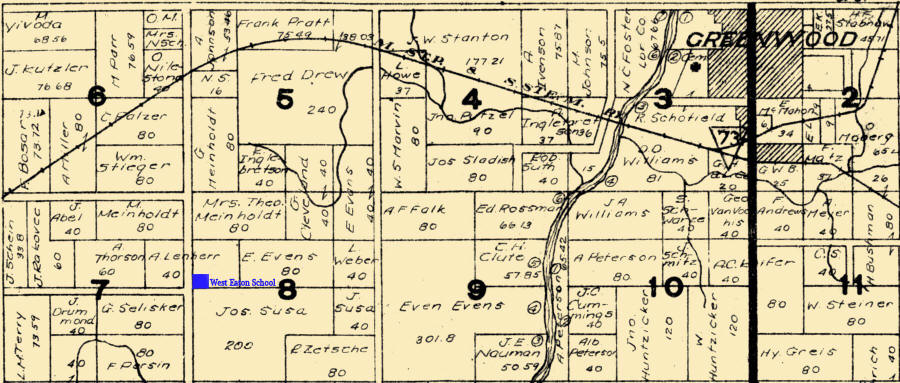 1920 Map showing the location of West Eaton School, Greenwood, Wisconsin