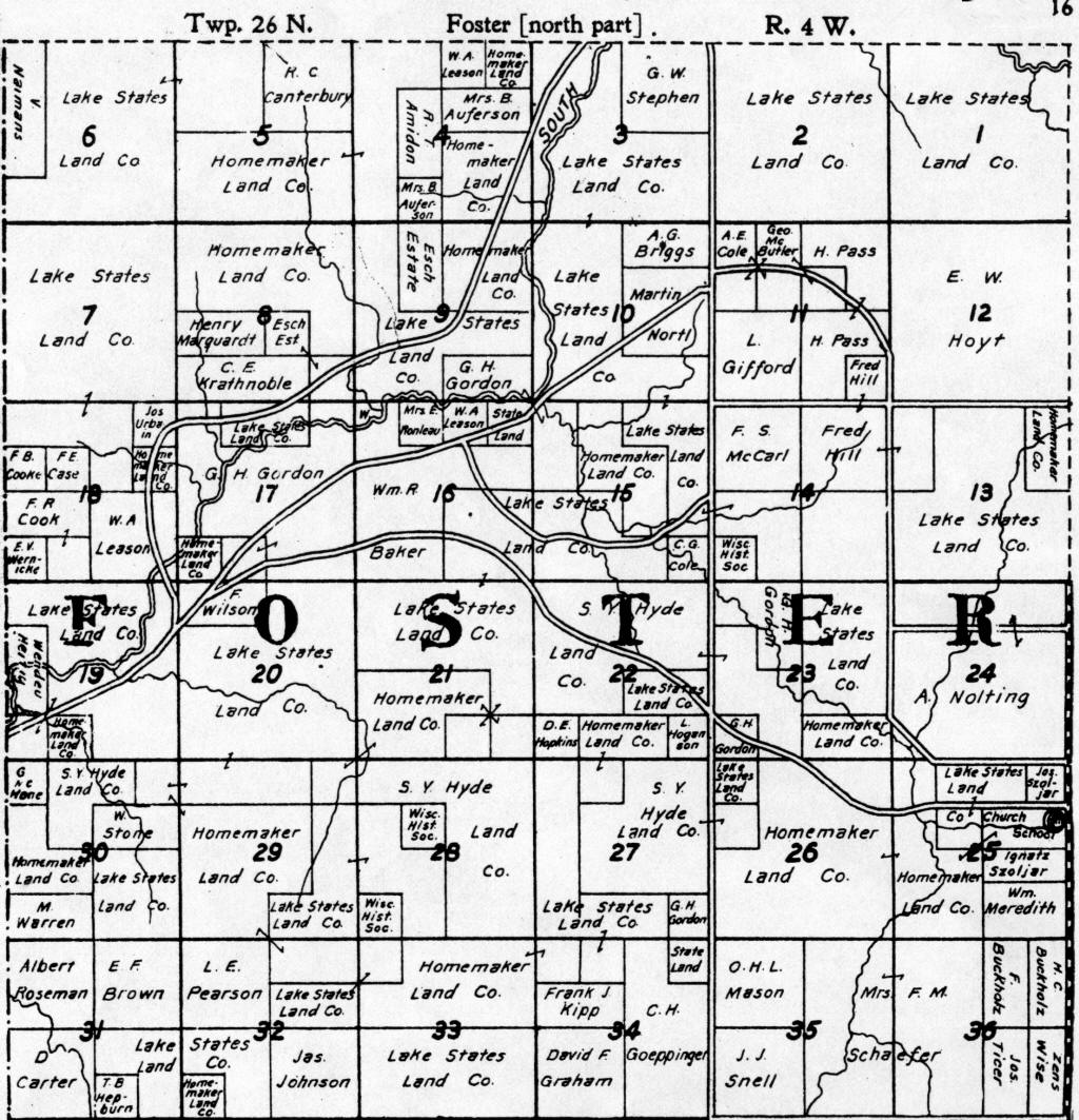 The "Church School" was built in 1907, in the town of Foster, northeast part of Section No. 24. George Church, who now lives in Neillsville, was one of the first pupils to attend that school. At the time, the address was Tioga, as there was a post office there. Today the address is Willard.