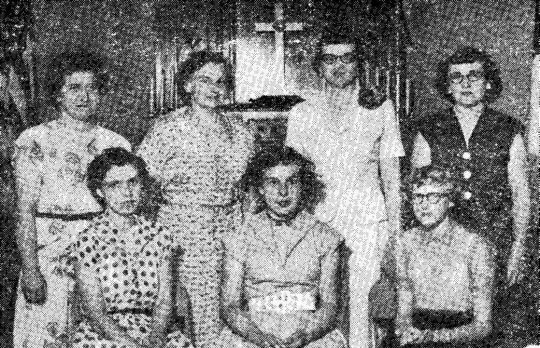 First Row, L to R: Mrs. F. Glenzer, Treasurer - Mrs. L. Laabs - Mrs. C. Marquardt, President - Mrs. R. Glenzer, Vice-President - Mrs. John Miller - Mrs. Joe Miller - Mrs. F. Meyer - Mrs. B. Schauer.