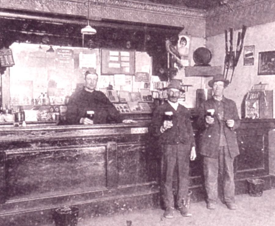 (Click to enlarge) Bartender Arthur Schuette serves farmers Fred Price and John Miller in the Atwood Tavern. Atwood resident Calvin Schultz believes the photo was taken in the early 1930s. |