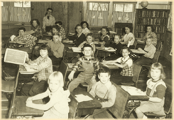 Early Photo of students at the South Bright School, courtesy of Helen (Eloranta) Vater Blaha.