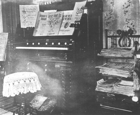 For music we could always depend upon Fred Moser, Sr., with his violin. Elliott Bliss was also a great "fiddler." He could chew tobacco and stomp