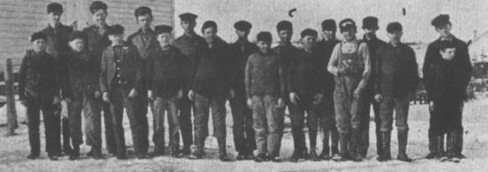 Back row - Art Schulz, Ward Lockman, Frank Putz, John Putz, Joe Walport, Joe Malek, Henry Bornholdt, John Larson, Conrad Christofferson, Leslie Babcock, and Fred Walport. |