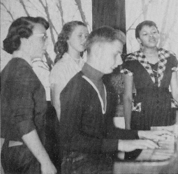 R. Cieslik accompanies a vocal trio consisting of T. Gaffney, R. Lindgren, and M. Pitts.