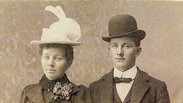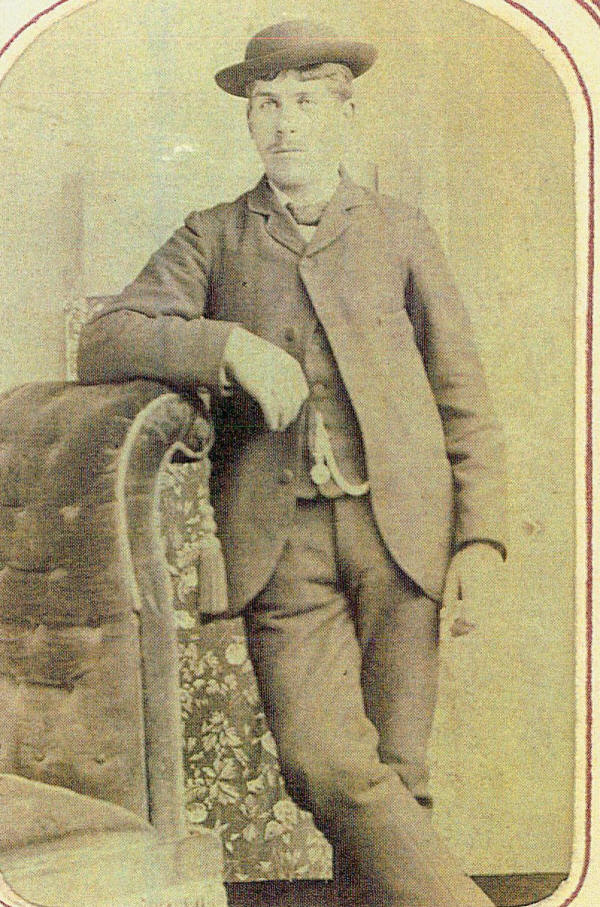 Thomas F. Burge on the right. Lady on left is his cousin – either Allie or Sylvina Christie