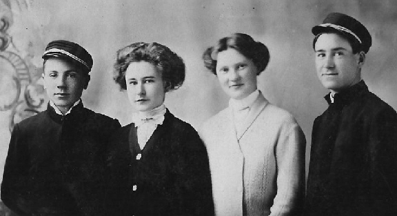 Here are few mystery photos I got from my cousin, Archie Johnstone, who died earlier this year. Unfortunately he had forgotten who these photos are of -- I think many of them were from either my great-grandparents Engebretson or from his mother, Annie Engebretson Johnstone. The one of the two younger women with two younger men in what looks like some sort of uniform has "Harry Palms" lightly penciled on the back. One has "Andreas" written on the back, but the rest are not labeled. Maybe someone out there can recognize a family member and clear up some of these mysteries.