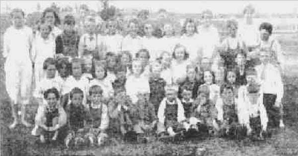 Back row two, left to right: Ella Adamec, Anna Tichy, Roland Johnson, Robert Meier, Mary Cernik, Helen Krumpeck, Elsie Gentemann, Dora Pettera, Hilda Phillips, Joe Struensee, Louis Matousek