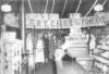 This is a picture of the Farmer store in Withee about forty years ago. It was taken at Christmas time. It has since been torn down. It stood on the corner just south of the old drug store. The people in the picture are Lula Stewart, Adelle Jackson, Mildred Stewart, Frank Brodbeck, and Thorvaid Stigsen.