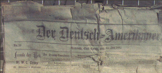 Pictured is a portion of the 1893 German newspaper printed in Neillsville, which was found recently in the time capsule, at St. Anthony’s Church in Loyal.