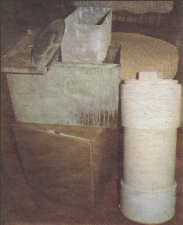 The metal time capsule that was recently found is shown next to the new PVC capsule (right) that will soon be placed in the cornerstone of the new addition to the church.