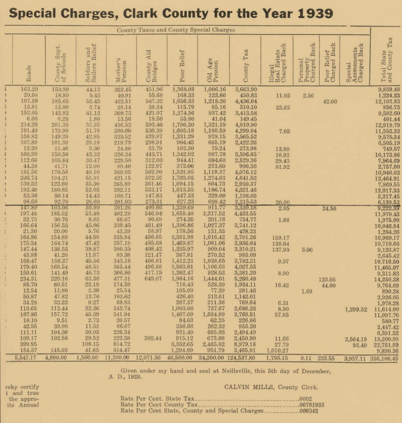 Until about 1875, Clark County finances were on an insecure basis. There was little actual cash in circulation, and most of that little was spent outside the County for supplies. For all claims against the county, county orders were issued, which circulated as the ordinary medium of exchange at varying discounts of 25 to 50 percent. Dealing in county orders became an established and sometimes profitable business, although the county would not accept them in payment for any but county taxes.
