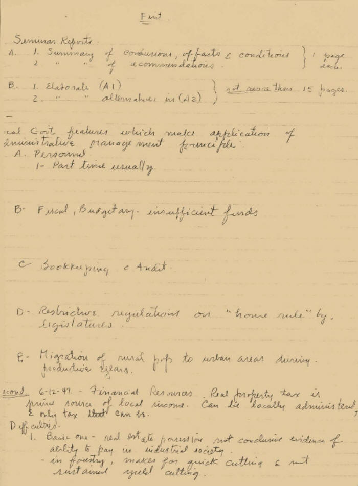 8-15-47 – Local Government Seminar, U-Wis. Prof. Wm. Young