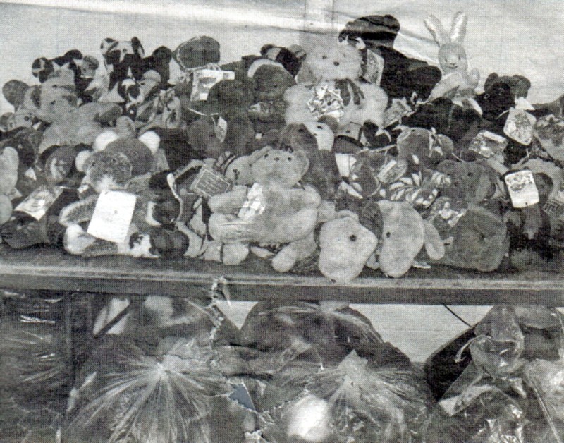 Here are the many teddy bears made by Black River Correctional inmates (of Black River Falls) for the Christmas Angel Project. They are all hand-sewn. The inmates also crochet hats, mittens and scarves. They used fabric donated by Marshfield Furniture to make backpacks and pencil cases as well. (Contributed photo)