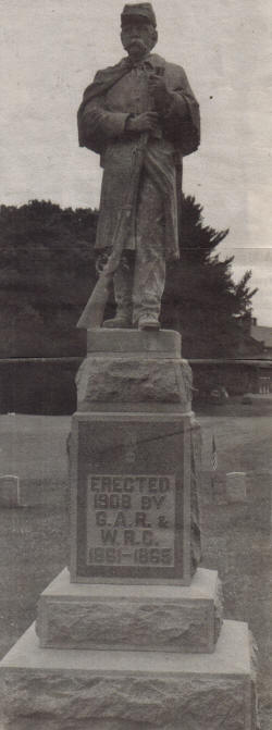 The Grand Army of the Republic Post (GAR) and the Woman’s Relief Corps (WRC) were responsible for the gray granite statue of the union Soldier of heroic size, which was erected in the Neillsville Cemetery.
