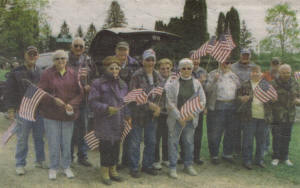 Neillsville American Legion Post 73 volunteer Bob Shaw (above) places a U. S. flag at a Neillsville City Cemetery grave Wednesday, May 25, to observe Memorial Day. Shaw and other Legion volunteers (below) placed flags on permanent grave markers in Neillsville cemeteries to prepare for this year’s Memorial Day observance. Over 600 flags were placed on the graves of both men and women to recognize their service to the country in past wars and military actions. The Clark County Veterans Service Office provided the flags, by state statute, to cities and towns for this purpose. This volunteer effort is an annual activity. The flags usually remain in place through the July 4 celebration. (Contributed photos)