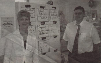Annette (left) and Terry Marty pose next to boxes at Neillsville’s Marty’s Foods where customers can place receipts to support the youth organization of their choice as part of the ‘Cash for Kids’ program. After the project ends Nov. 6, Marty’s will give one percent of the receipt totals in each box to that organization. (Photo by Peter Spicer/Clark County Press)