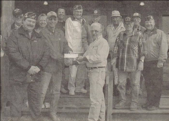 On April 28, members of the Loyal American Legion Post #175 participated in the annual volunteer day at The Highground Veterans Memorial Park near Neillsville. Activities included brush cutting, trail building, painting and general repair. At the end of the day, the Loyal Post presented Highground general manager Kirk Rodman with a $2,500 donation toward the Korean War Memorial to be added to The Highground later this summer. Pictured are (front from left) Dan Campbell, Post Commander Gary Weirauch, Kirk Rodman, Jerry Tieman, Bruce Hadler, (back) Bob Berglund, Mary Counsell, Chuck Counsell, Vern Dahlby, Art Hoffman, Vince "Pete" Lindner and Walt Hoffman.
