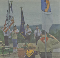 Neillsville Boy Scouts salute the flag during he Star Spangled Banner at The Highground?s Flag Day Ceremony held Saturday, June 12, 2010. The Boy Scouts, Neillsville Color Guard and Loyal Legion Post 175 presented flags at the Ceremony.