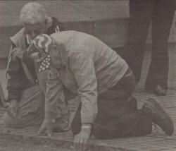 Before Legacy Stones were placed, ceremony attendee Neil Kachur mixed earth from Saturday?s legacy Stone ceremony. Earth from this ceremony will be saved and spread at the next ceremony, which connects all Highground stone ceremonies.