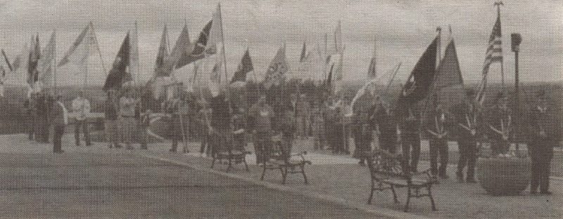 Neillsville Boy Scout Troop 43, Neillsville Cub Scout Pack 43 and volunteers marched behind flags Neillsville American Legion Post 73 presented during the Flag Day Celebration. A total of 32 Native American flags were place on the plaza to honor Flag Day.