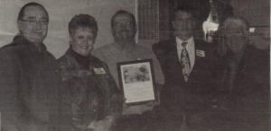 Highground Volunteer General manager Kirk Rodman (above right), alongside Highground board member Don Quicker (center), presents the Spirit of The Highground Award to Charles Neff Jr. (left) during the Friends of The Highground Dinner held Saturday, Feb. 26, at Fannie?s Supper Club near Neillsville. (Contributed Photos)