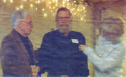 The Highground Volunteer General Manager Kirk Rodman (above left) and Event Coordinator Joyce Witt (right) congratulate Ken Jennings, who received the Bronze Level President Award at The Highground Volunteer Appreciation Potluck held Saturday, Jan. 17, at the Loyal American Legion. Rodman (below left) and Witt (right) congratulate Terri and Al Johnson after they received The Highground Award.