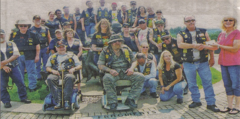 Jim Dull, along with other members of In Country Vietnam Motorcycle Club, presented a check in the amount of $1,000 to Joyce Witt, event/volunteer coordinator of The Highground Veterans Memorial Park at Neillsville. This donation will be used for gas cards for the sag vehicles driven in The Highground’s Annual Bicycle Tour and also for a new mule. The Highground greatly appreciates this generous donation. (Contributed photos)