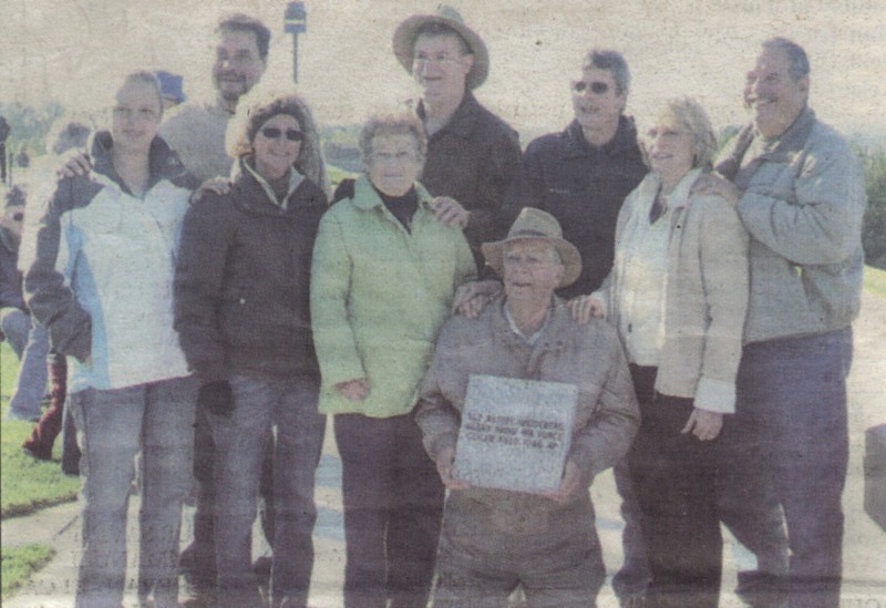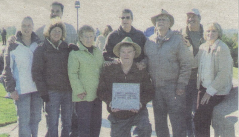U. S. military veterans Craig Vandeberg (above, holding stone) and his father, Russell Vandeberg (below, holding stone) pose with family and friends after both were honored with Legacy Stones Saturday, Oct. 4, at The Highground. Craig Vandeberg who served in the U. S. Marines is a Neillsville High School graduate who resides in Hayward, CA. The legacy stones were placed next to each other. (Contributed photo)
