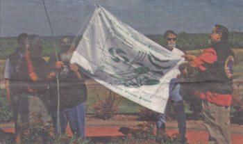 The Pala Band of Mission Indians’ flag was raised Friday, Aug. 8, 2008, at a ceremony held at The Highground. The Tribal flag was the 55th received by The Highground to honor American Indian Vietnam veterans.