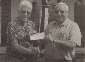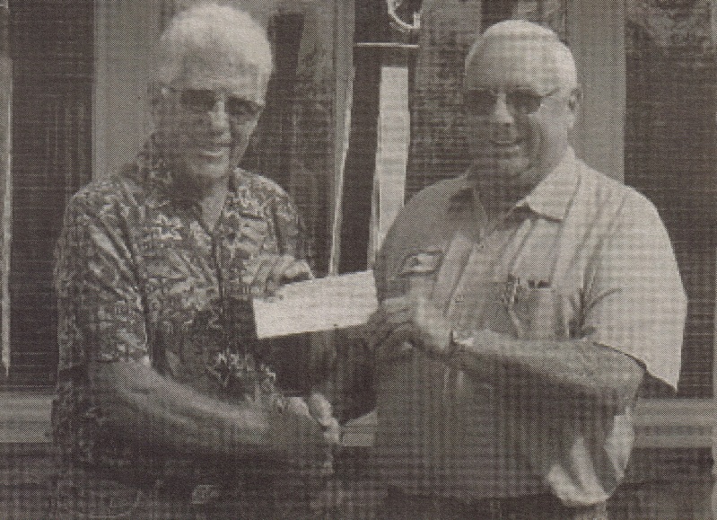 Don Boon (right) of Boon Construction in Neillsville presents Highground Volunteer General Manager Kirk Rodman with a $1,450 check for the Learning Center’s new parking lot. (Contributed Photo)