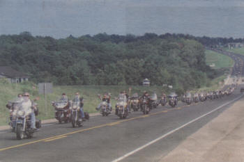 A string of motorcycles heads west on USH 10 to The Highground Saturday, Aug. 21, 2010, during The Highground’s 10th annual Ride to Remember. A ceremony and picnic were then held after participants arrived. (Contributed Photo)