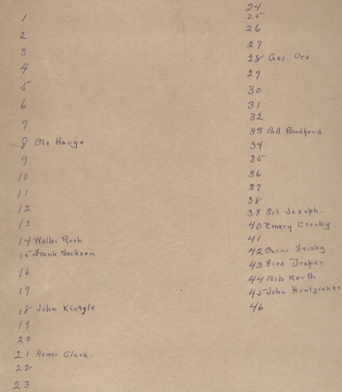 8) Ole Hauge | 20) | 32) | 44) Bob Korth |