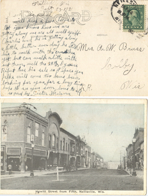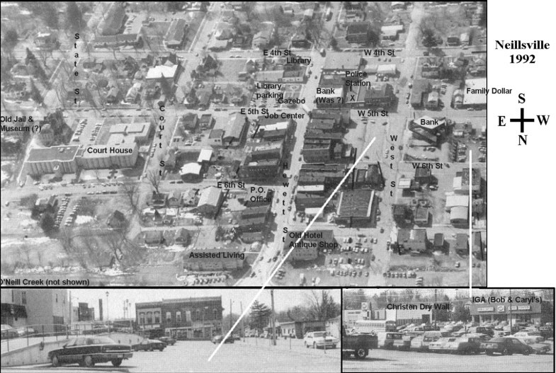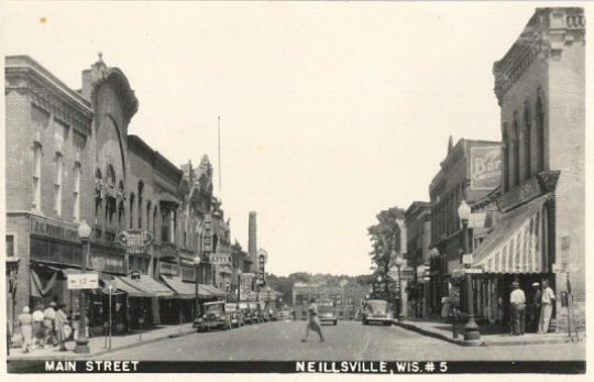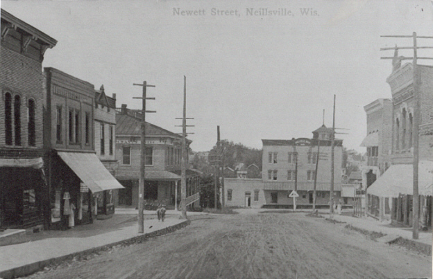 Birdseye View of Downtown, Neillsville, Hewitt So. View (1909), Neillsville--Hewitt St. South, Neillsville Downtown, Neillsville Downtown, Photo: Hewitt St., Neillsville, WI 8 DEC 1915, Neillsville looking south (30 Sep. 1918), Neillsville (1919), Photo: Neillsville Main Street, Neillsville View to South, Neillsville View From 5th & Hewitt, Neillsville, Hewitt St. View To The North; Street Scene (1935); 1992 aerial View (Downtown Neillsville).