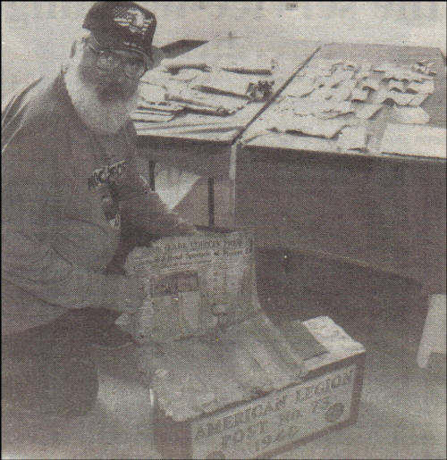 Louis Albrecht, a past Commander of Post 73, holds up a Sept. 30, 1948 issue of The Clark County Press, one of the items that had been placed in the cornerstone of the old Legion Hall building in downtown Neillsville when it was dedicated nearly 60 years ago. |