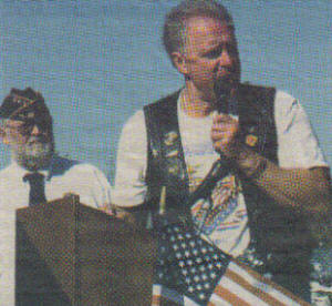 State Senator Dave Zien, one of the speakers at Saturday?s groundbreaking ceremony for the new Neillsville Legion Hall and community center, called the event a ?prestigious time? that bodes well for the area that includes The Highground veterans memorial park. Rich Thoma (left), Neillsville American Legion commander, served as Master of Ceremonies for the event. |