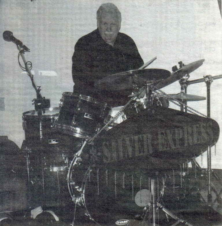 The Silver Express Band?s drummer keeps the beat while his band performs for dinners at the Welcome Home Soldier Steak Feed held at Neillsville?s American Legion Post 73 Saturday, Feb. 20. (Peter Spicer/Clark County Press) |