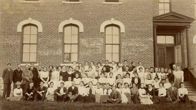 The image above was purchased at a flea market in Los Angeles, CA. and appears to be a high school class photo from around 1910. It was taken by Juve photography. The back of the image reads, “Our country school house in Neisville (Neillsville?), Wisc., Helen; Teacher Alma Happy (Happe?).” If you can make a positive identification, please contact me, Ben Taniguchi.